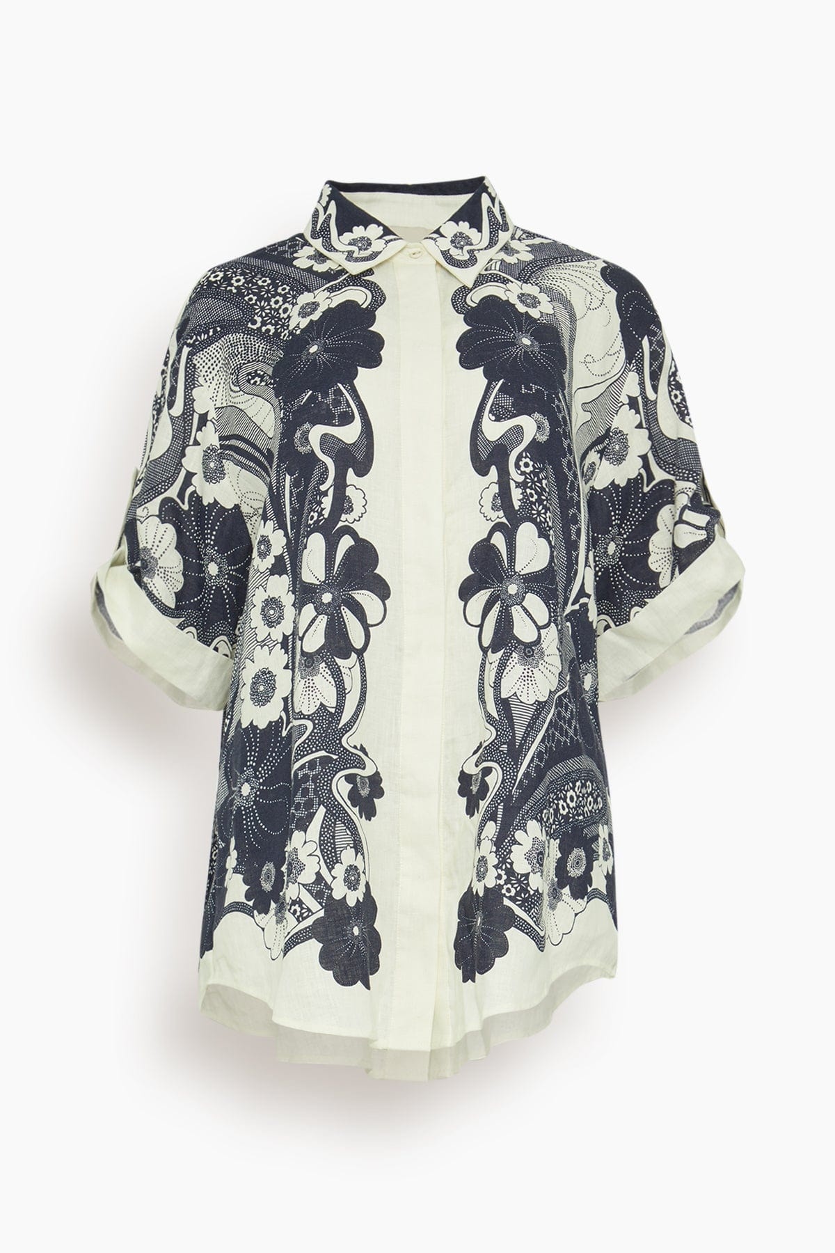 The Alemais Mickey Shirt is crafted in a bold floral print. You'll love the relaxed fit of this button down shirt in European linen. Wear yours with the matching trousers and flats. FIT DESCRIPTION MODEL MEASUREMENTS - Fits true to size, take your normal size - Button down shirt - Relaxed fit - Rolled sleeves - Concealed placket - 100% European Linen - Emma is wearing a size 6/ 2 US - Bust: 32” - Waist: 25” - Hips: 34” - Height: 5’7”