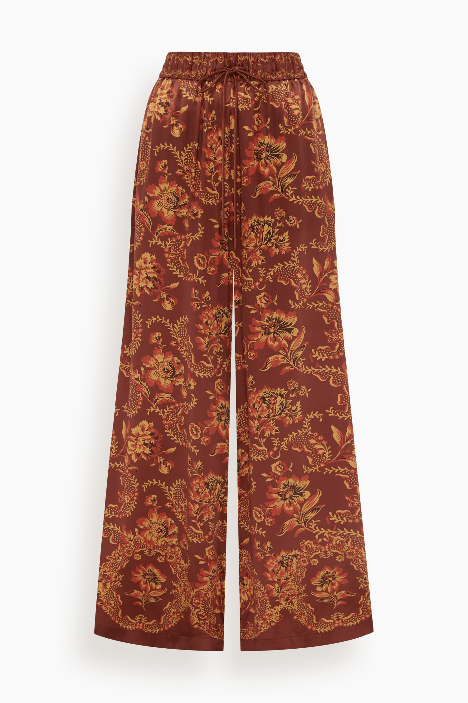 The Alemais Seraphina Silk Pant are the perfect transitional piece to add to your fall wardrobe. These wild leg pants are crafted in silk with a bold paisley print. Wear yours with the matching top and sandals. FIT DESCRIPTION MODEL MEASUREMENTS - Fits true to size, take your normal size - Wide leg - Relaxed fit - Elastic waistband with ties - High rise - 100% Silk Satin Sandwash - Taylor is wearing a size 6/ 2 US - Bust: 33.5" - Waist: 27.5" - Hips: 36.5" - Height: 5’9”