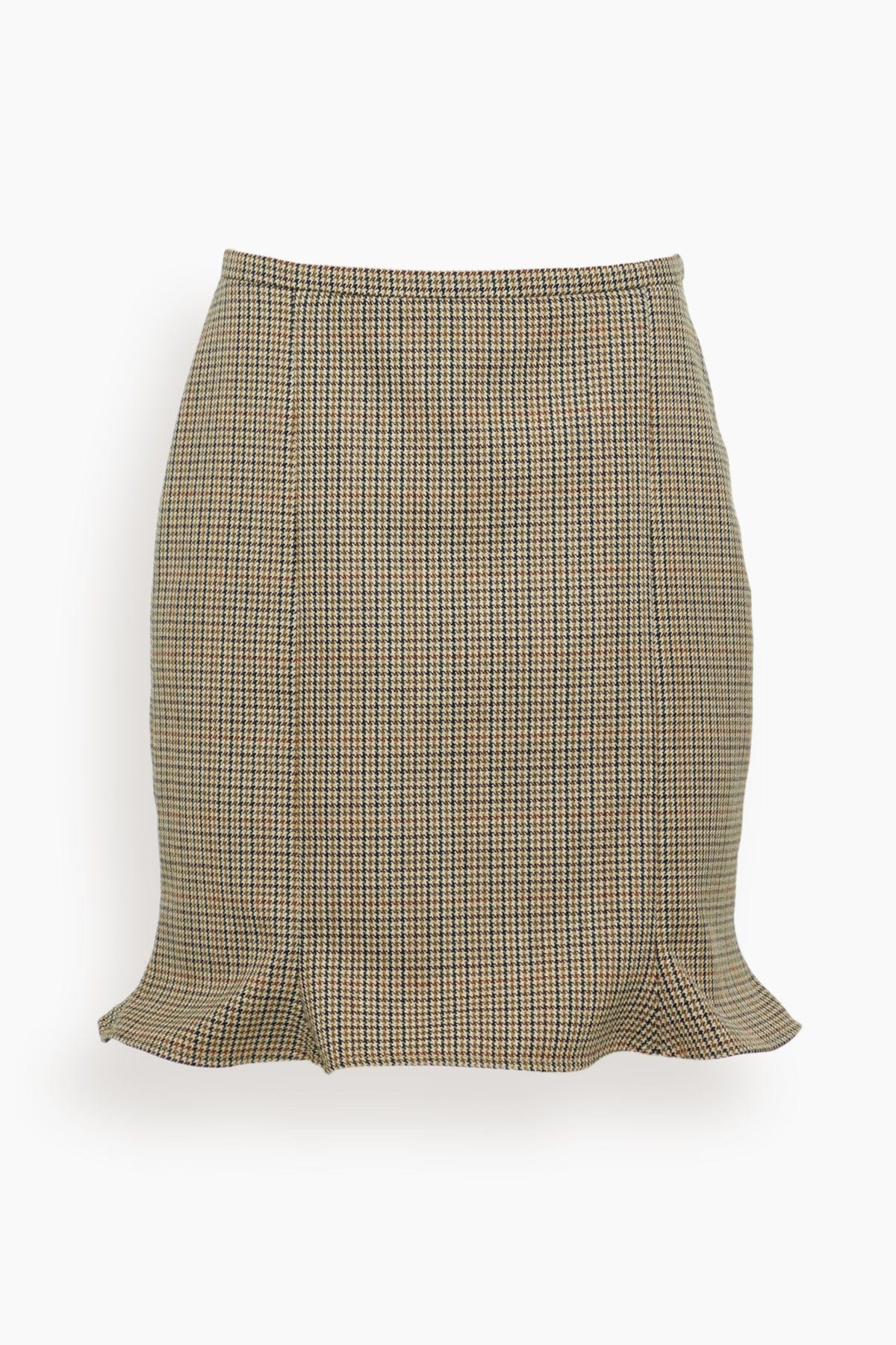 Arista Flared Checked Wool Skirt in Houndstooth Check