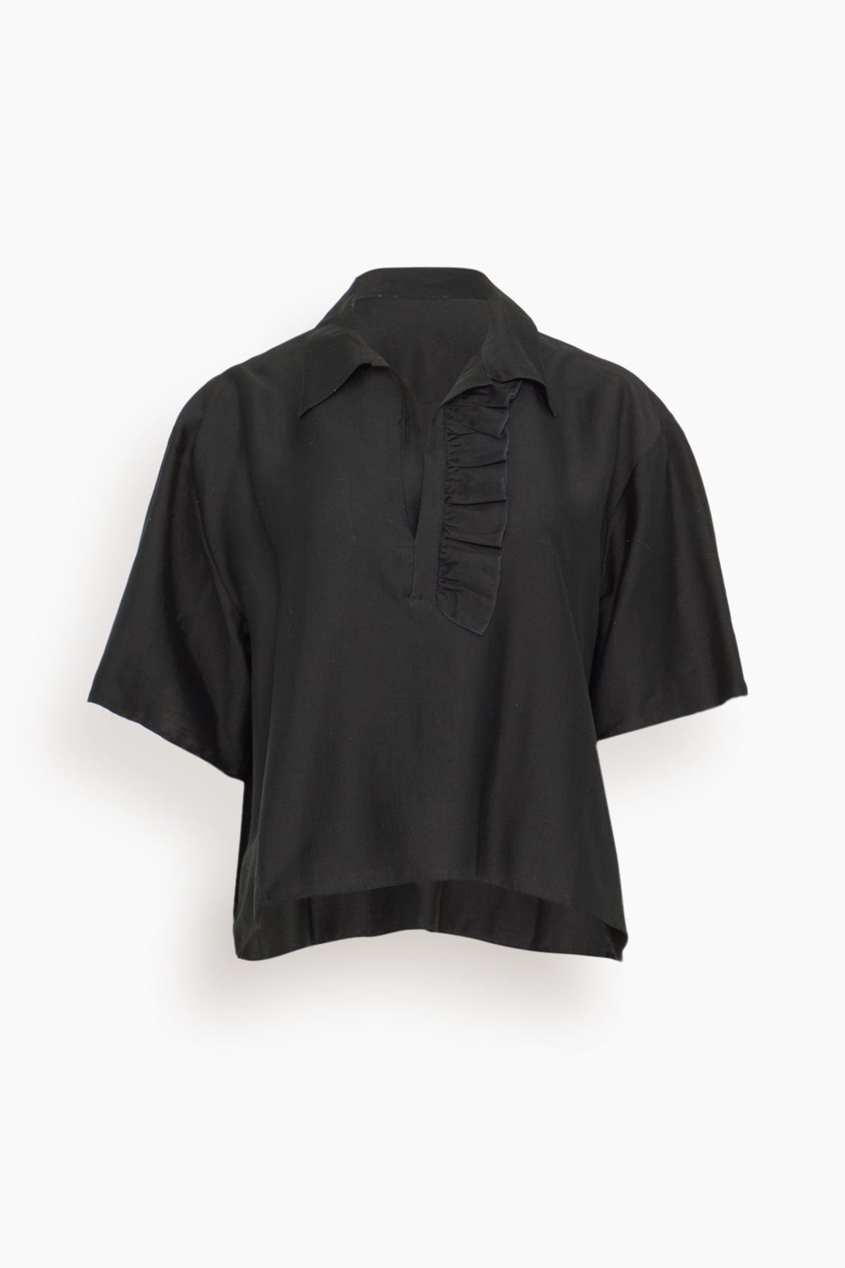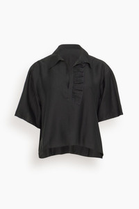 The Bite Studios Luna Frill Short Sleeve Shirt has the playful details you love from this designer. This short sleeve top features a boxy silhouette with a bold ruffle detail. Wear yours with the matching pants and sandals. FIT DESCRIPTION MODEL MEASUREMENTS - Fits true to size, take your normal size - Short sleeve top - Boxy silhouette - Split neckline - Spread collar - Ruffle detail - Drop shoulders - 87% TENCEL™ Lyocell, 13% silk - Harriet is wearing a size 34/ 2 US - Bust: 32" - Waist: 24" - Hips: 30.5" - Height: 5’8.5”