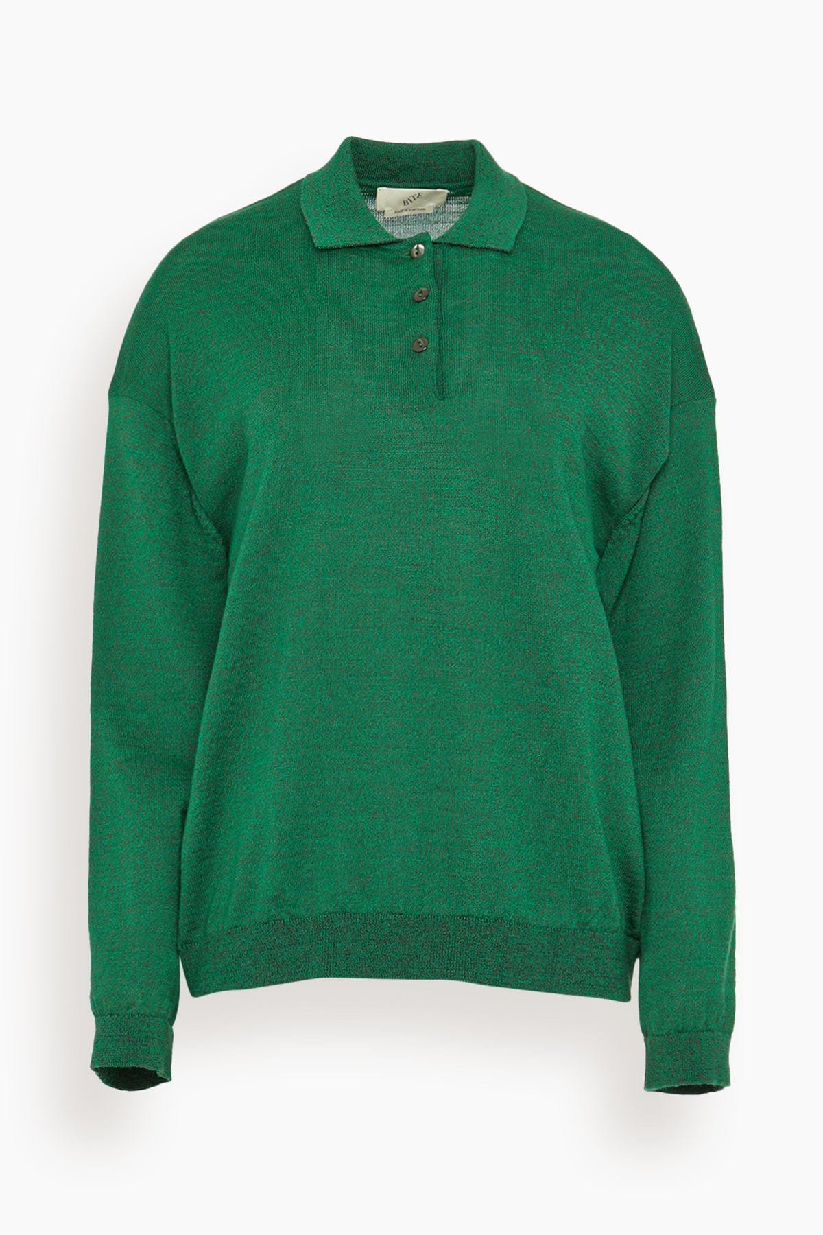 Polo Neck Merino Wool Cut-Out Knit Sweater in Dark Green Melange