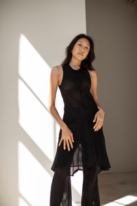 The Bite Studios Shield Organic Cotton Check Mini Dress features the simplistic details you love from this designer. This mini dress has a slim silhouette in a subtle check printed organic cotton. Wear yours with flats and a tote bag. FIT DESCRIPTION MODEL MEASUREMENTS - Fits true to size, take your normal size - Mini length - Slim silhouette - Flared skirt - Roll collar - 100% Organic cotton - Stylist note: This style is sheer. We suggest wearing a slip with this dress. - Harriet is wearing a size 34/ 2 US - Bust: 32" - Waist: 24" - Hips: 30.5" - Height: 5’8.5”