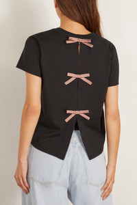 The Dorothee Schumacher Feminine Favorites Top will be a staple in your wardrobe. This short sleeve top has a surprise bow back detail with a boxy silhouette. Wear yours with jeans and flats. FIT DESCRIPTION MODEL MEASUREMENTS - Fits true to size, take your normal size - Short sleeve top - Boxy silhouette - Open back - Bow detail - 100% Cotton - Emma is wearing a size 1/ XS - Bust: 32” - Waist: 25” - Hips: 34” - Height: 5’7”