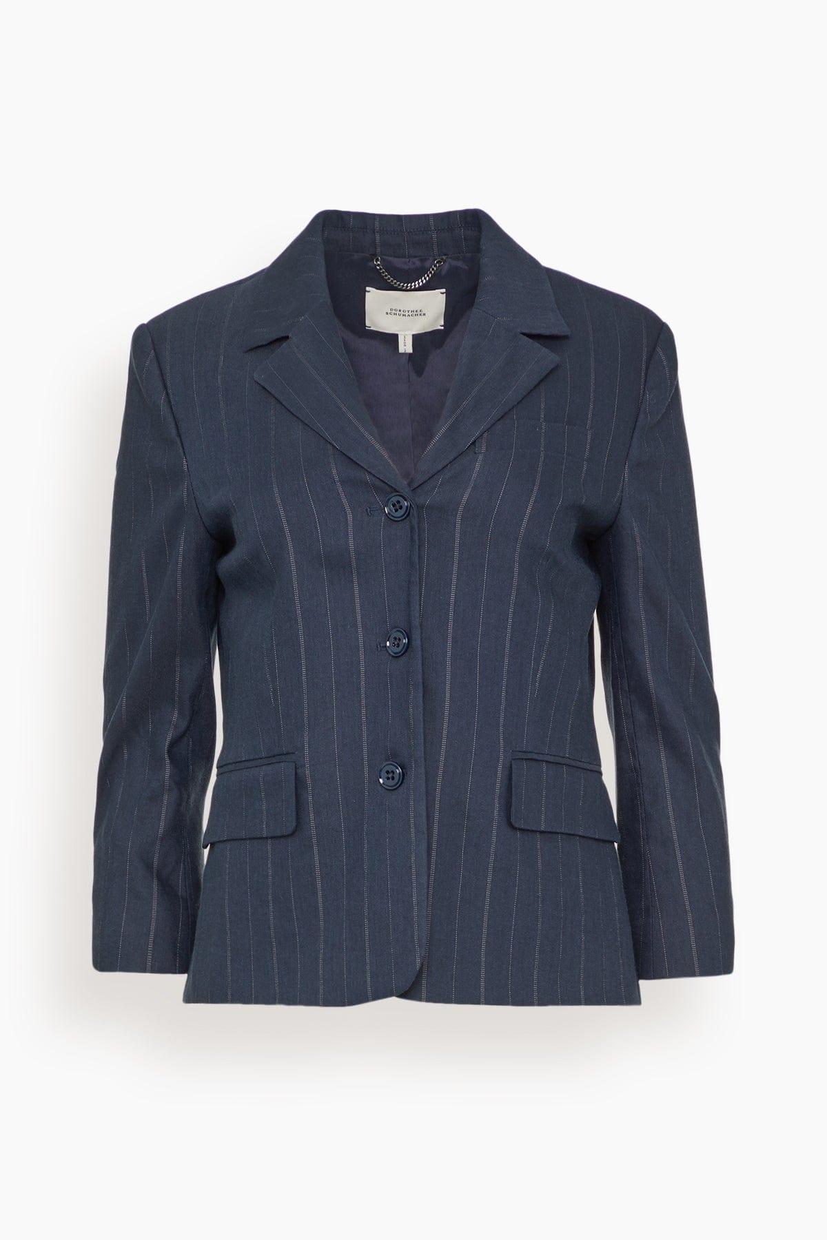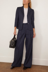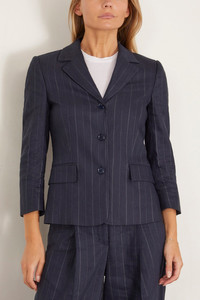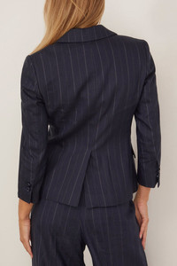 The Dorothee Schumacher Modern Sophistication Jacket is a timeless addition to your wardrobe. This jacket feature a slim, ladylike silhouette in a beautiful pinstripe linen blend. Wear yours with a skirt and heels. FIT DESCRIPTION MODEL MEASUREMENTS - Fits true to size, take your normal size - Blazer - Tailored silhouette - Cropped sleeves - Notched lapel - Flap pockets - 52 % Linen, 45 % Viscose, 2 % Elastane, 1 % Polyester - Charley is wearing a size 1/ XS - Bust: 33” - Waist: 25” - Hips: 34” - Height: 5’8”
