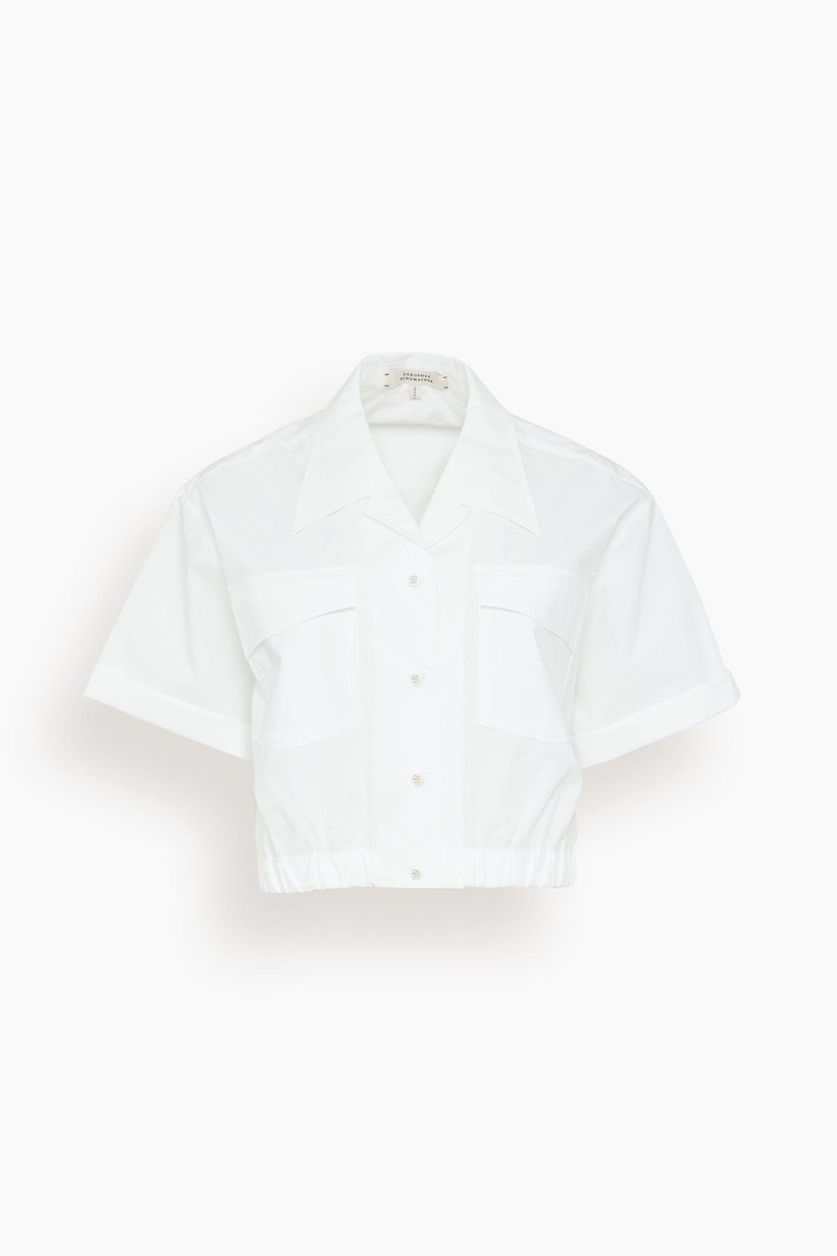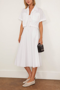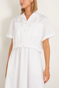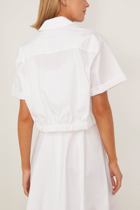 The Dorothee Schumacher Poplin Power Blouse will be a staple in your summer wardrobe. This blouse features a boxy, cropped silhouette than can easily be worn up to mimic a jacket. Wear yours with a dress and sandals. FIT DESCRIPTION MODEL MEASUREMENTS - Fits true to size, take your normal size - Button front - Boxy silhouette - Cropped length - Elastic waistband - Flap pockets - 96 % Cotton, 4 % Elastane - Harriet is wearing a size 1/ XS - Bust: 32" - Waist: 24" - Hips: 30.5" - Height: 5’8.5”