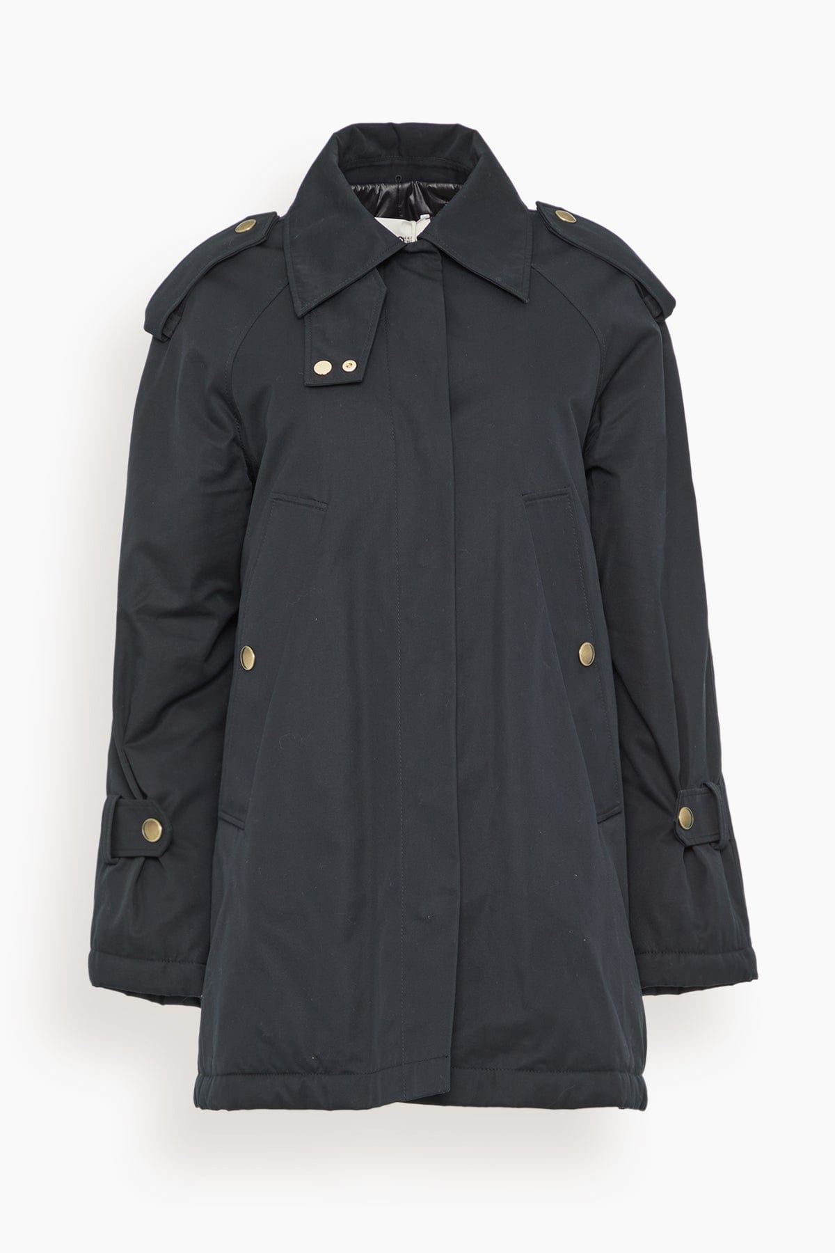 The Dorothee Schumacher Urban Adventure Coat is a great addition to your fall wardrobe. The jacket is a mix between a barn and trench coat with a relaxed fit and quilted lining. Wear yours with a sweater and jeans. - Jacket - Relaxed fit - Button front - Quilted lining - Raglan sleeves - Epaulettes - 100% Cotton