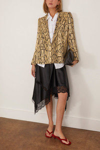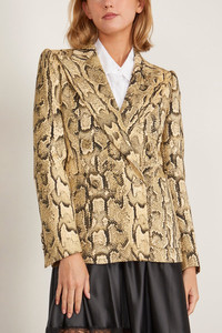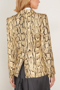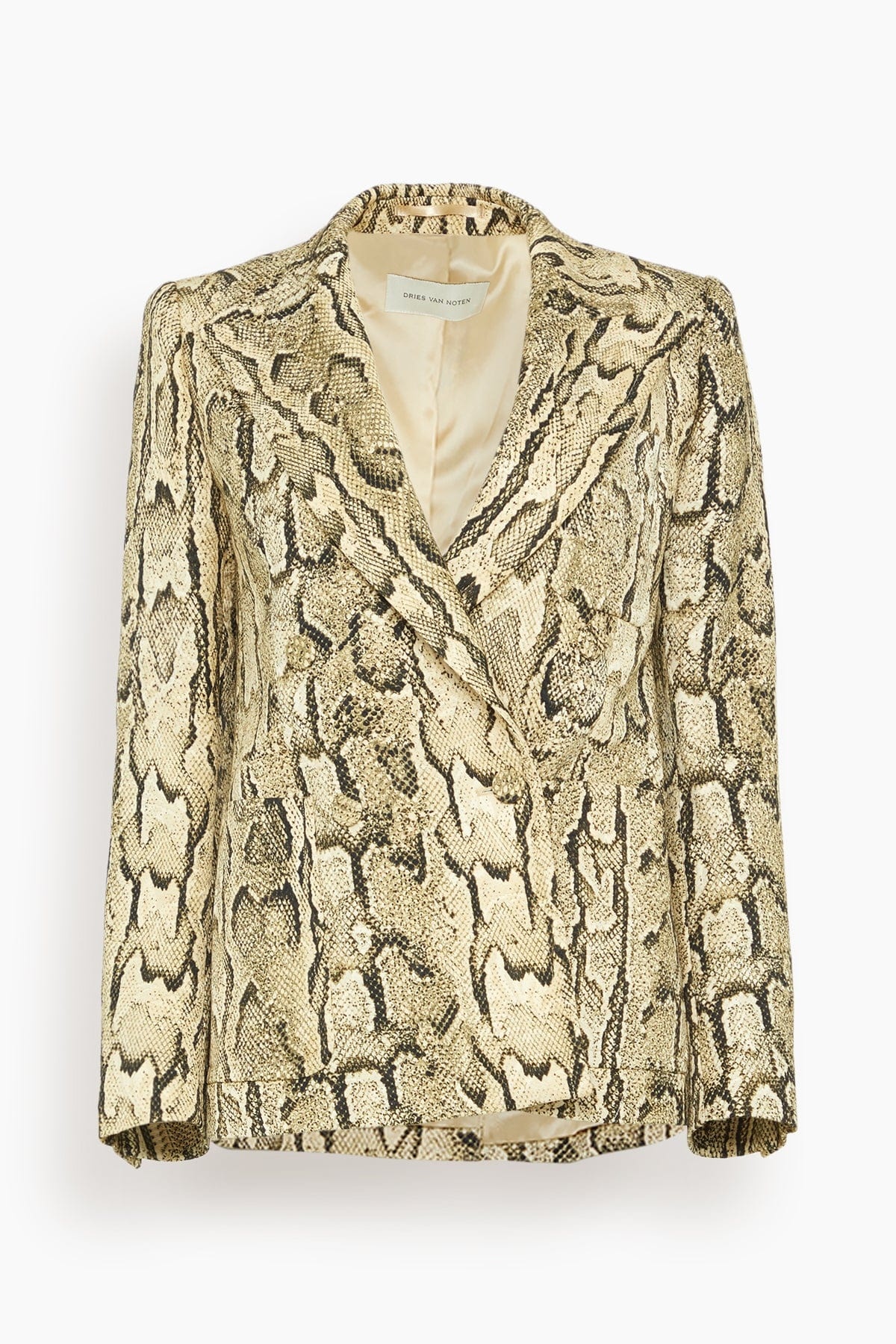 The Dries Van Noten Beau Jacket in Snakeprint is a regular fit double-breasted blazer in viscose cotton jacquard, with snakeskin print. FIT DESCRIPTION MODEL MEASUREMENTS - Fits true to size, take your normal size - 64% Viscose, 36% Cotton. Lining: 100% Viscose. - Printed-snakeskin jacquard. - Regular fit. - Lined. - Double-breasted. - Front and chest patch pockets. - Buttoned cuffs. - Single vent. - Front button closure. - Harriet is wearing a size 34/ 2 US - Bust: 32" - Waist: 24" - Hips: 30.5" - Height: 5’8.5”