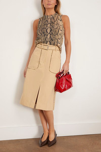 The Dries Van Noten Sheraz Skirt is a classic with a twist. This a-line skirt features a tailored silhouette with contrasting piping along the pockets and waistline. Wear yours with a blouse and loafers. FIT DESCRIPTION MODEL MEASUREMENTS - Fits true to size, take your normal size - Knee length - A-line silhouette - High rise - Contrasting piping - Belted waistband - Front slit - 100% Cotton
