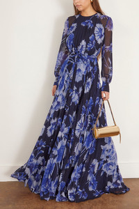 The Erdem Long Sleeve Gown will have you ready for your next event. This gown is crafted in a beautiful floral print with with pleating and sheer sleeves. Wear yours with heels and a clutch. FIT DESCRIPTION MODEL MEASUREMENTS - Fits true to size, take your normal size - Gown - Fit and flare silhouette - Pleating - Sheer blouson sleeves - Self tie belt - Concealed zipper - 100% Polyester - Emma is wearing a size 6/ 2 US - Bust: 32” - Waist: 25” - Hips: 34” - Height: 5’7”