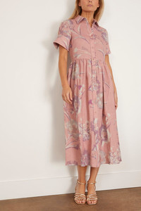 Short Sleeve Shirt Dress in Carnation Cyanotype Rose