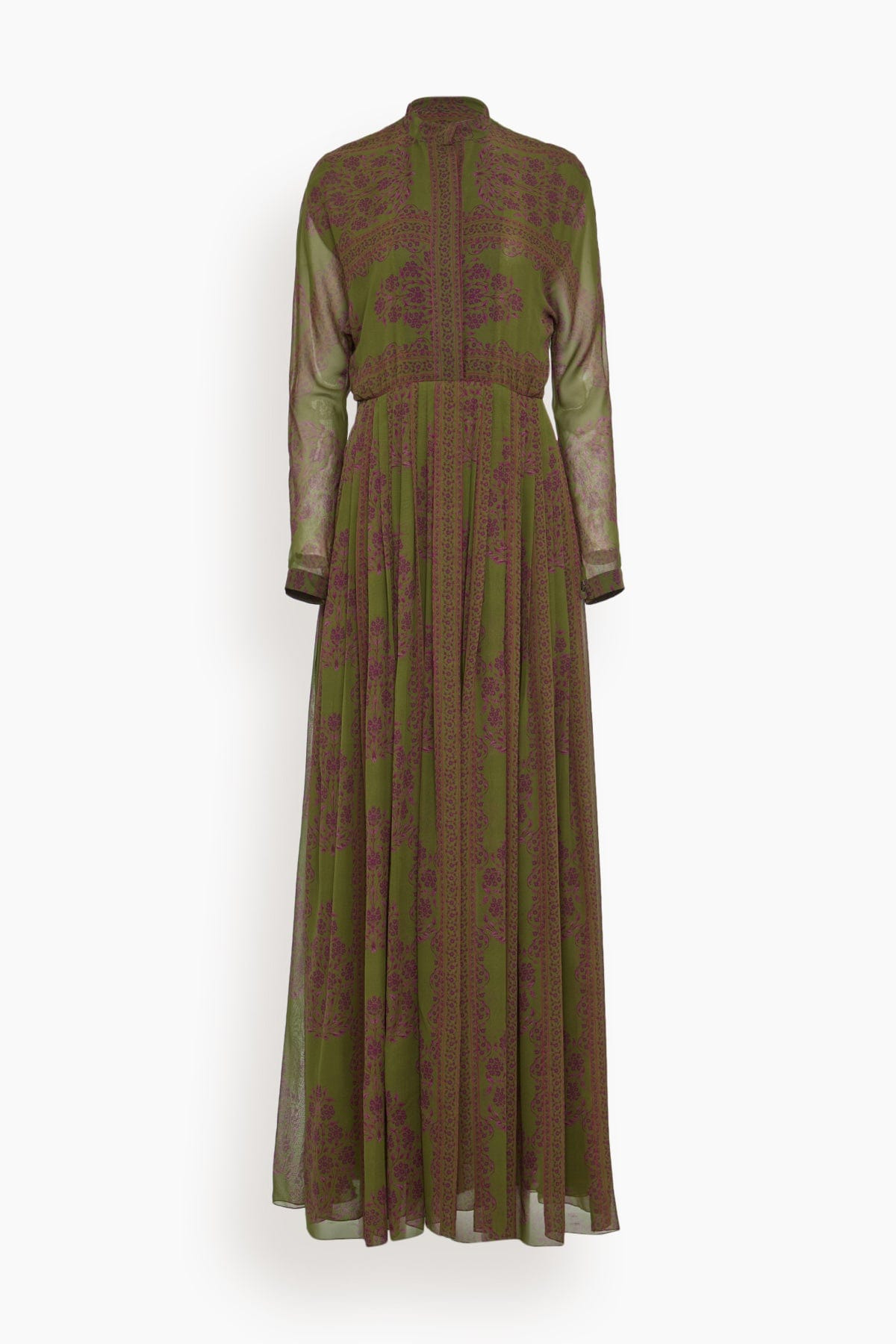 The Giambattista Valli Dress in Green Multi is crafted in a beautiful floral block print. You'll the classic concealed button front and pleated skirt of this maxi dress with a define waistband. Wear yours with heels and a clutch. FIT DESCRIPTION MODEL MEASUREMENTS - Fits true to size, take your normal size - Maxi length - Defined waistband - Concealed placket - Collarless - Pleated skirt - Harriet is wearing a size 38/ 2 US - Bust: 32" - Waist: 24" - Hips: 30.5" - Height: 5’8.5”
