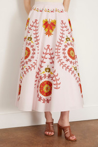 The Giambattista Valli Skirt in Rose/Red is a beautiful piece from their Resort 25 Collection. This midi skirt features a flattering a-line silhouette with a screen print. Wear yours with a blouse and heels. FIT DESCRIPTION MODEL MEASUREMENTS - Fits true to size, take your normal size - Midi length - A-line silhouette - High rise - Concealed zipper - Kortney is wearing a size 38/ 2 US - Bust: 29" - Waist: 22" - Hips: 34“ - Height: 5’10”