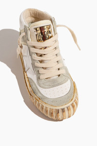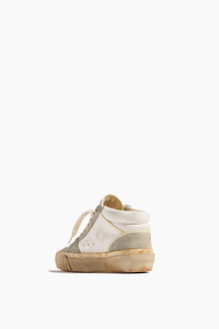 The Golden Goose Mid Star Sneaker in White/Ice are a great addition to your sneaker collection. These high top sneakers feature their signature distressing and star detail in leather and suede. FIT DETAILS - High top sneakers - Lace up front - Round toe - Distressing - Leather and suede upper - Rubber sole - 46% sheepskin leather, 44% cow leather, 10% polyamide