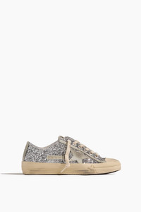 The Golden Goose V-Star 2 Sneaker in Silver/Ice will be a standout piece in your wardrobe. These sneakers features allover sequins and their signature star detail. FIT DETAILS - Low profile sneakers - Lace up - Allover sequins - Rubber sole