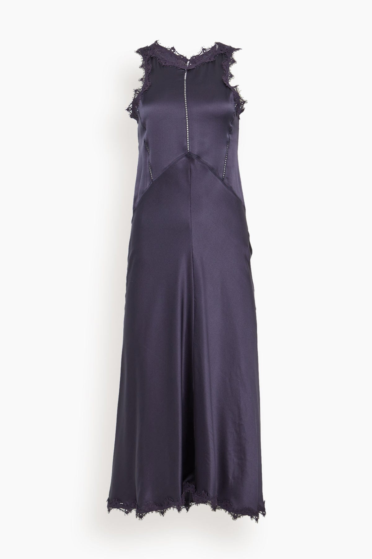 The Isabel Marant Jadelia Dress features a romantic look you'll love. This slip dress features a slim silhouette with lace details and an open back. Wear yours with heels and a clutch. FIT DESCRIPTION MODEL MEASUREMENTS - Fits true to size, take your normal size - Slip dress - Midi length - Slim silhouette - Open back - Lace detail - 94% silk, 6% Lycra - Charley is wearing a size 34/ 2 US - Bust: 33” - Waist: 25” - Hips: 34” - Height: 5’8”