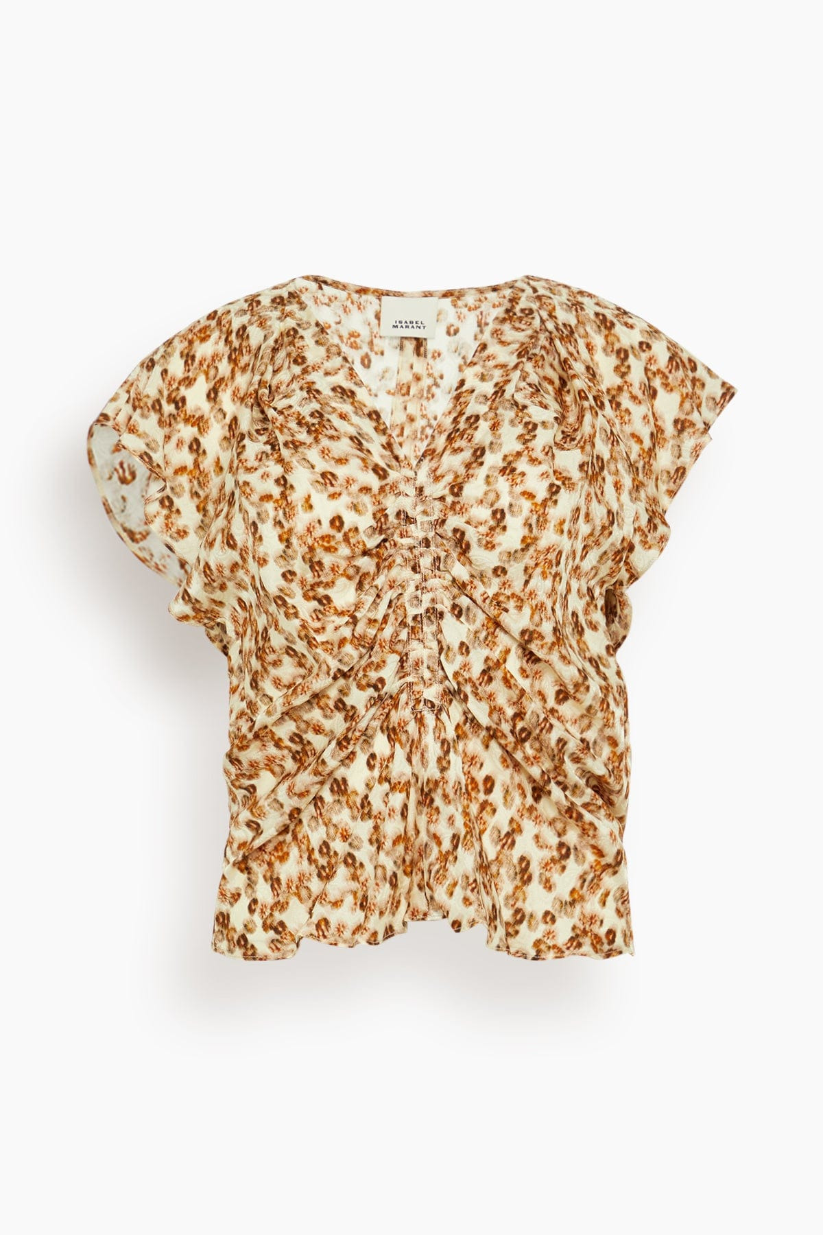 The Isabel Marant Lonea Top is crafted in their must-have print of the season. You'll love the ruching and flutter sleeves of this blouse. Wear yours with jeans and flats. - Blouse - Relaxed fit - V-neckline - Ruching - Flutter sleeves - 65% viscose, 35% silk