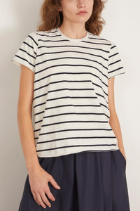 The Labo.Art Maglia Rico Striped Jersey will be a staple in your wardrobe. This short sleeve t-shirt features a relaxed fit with drop shoulders. Wear yours with jeans and flats. FIT DESCRIPTION MODEL MEASUREMENTS - Fits true to size, take your normal size - T-shirt - Relaxed fit - Round neckline - Drop shoulders - 94% COTTON 6% ELASTAN - Mya is wearing a size 0/ XS - Bust: 32" - Waist: 25" - Hips: 34" - Height: 5’9"