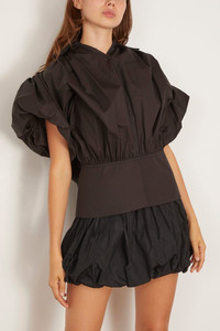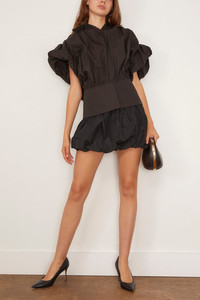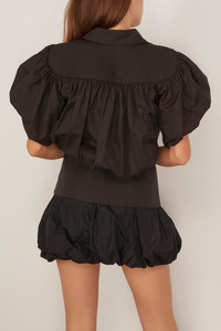 The Lanvin Puffy Sleeves Top in Black features rounded volumes and is crafted from cotton poplin create a feminine silhouette. This piece is also wrinkle-resistant, making it the perfect choice for all-day wear with an elegant outfit. - Puff short sleeve top - Loose fit and pleated design. - Fitted at the waist - Shirt collar - Hook closure - Topstitching details on the back - Made in Portugal - 100% Cotton