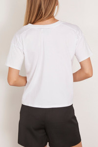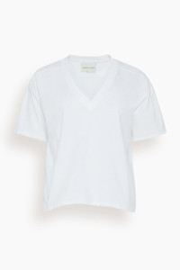 The Loulou de Saison Faaa V-Neck T-Shirt will quickly become a staple in your wardrobe. This t-shirt features a boxy silhouette and classic v-neckline in supima cotton. Wear yours with jeans and a sweater. - T-shirt - Boxy silhouette - V-neckline - Cropped length - 100% SUPIMA COTTON