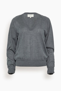 Julio V Neck Fine Knit Sweater in Anthracite Melange
