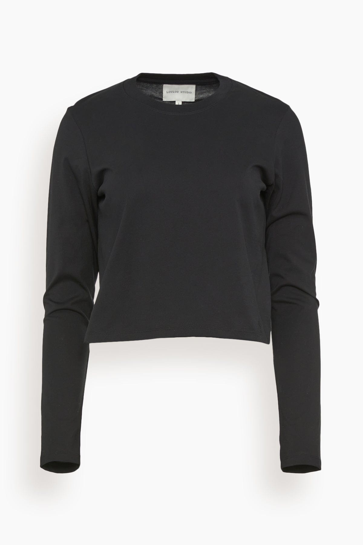 The Loulou Studio Masal Long Sleeve Shirt is a great everyday addition to your wardrobe. This long sleeve t-shirt features a boxy silhouette in organic supima cotton. Wear yours with jeans and flats. FIT DESCRIPTION MODEL MEASUREMENTS - Fits true to size, take your normal size - T-shirt - Boxy silhouette - Crew neckline - Cropped length - 100% organic cotton - Charley is wearing a size XS - Bust: 33” - Waist: 25” - Hips: 34” - Height: 5’8”