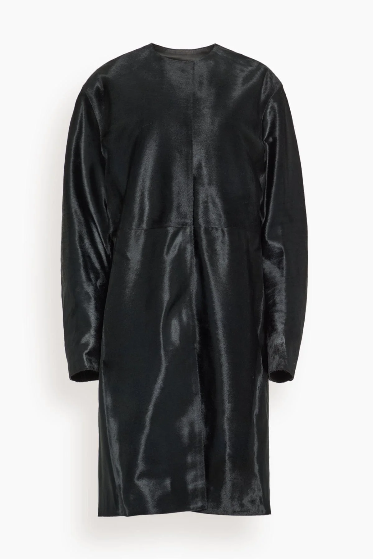 The Loulou de Saison Miller Calfskin Coat will be in your wardrobe for years to come. This coat is crafted in beautiful pony-effect leather with a straight silhouette an concealed placket for a streamlined look. Wear yours over a sweater and trousers. FIT DESCRIPTION MODEL MEASUREMENTS - Fits true to size, take your normal size - Coat - Straight silhouette - Knee length - Collarless - Concealed button placket - Pony-effect leather - 100% Calfskin - Rayna is wearing a size 34/ 2 US - Bust: 34” - Waist: 24” - Hips: 32” - Height: 5’8.5”