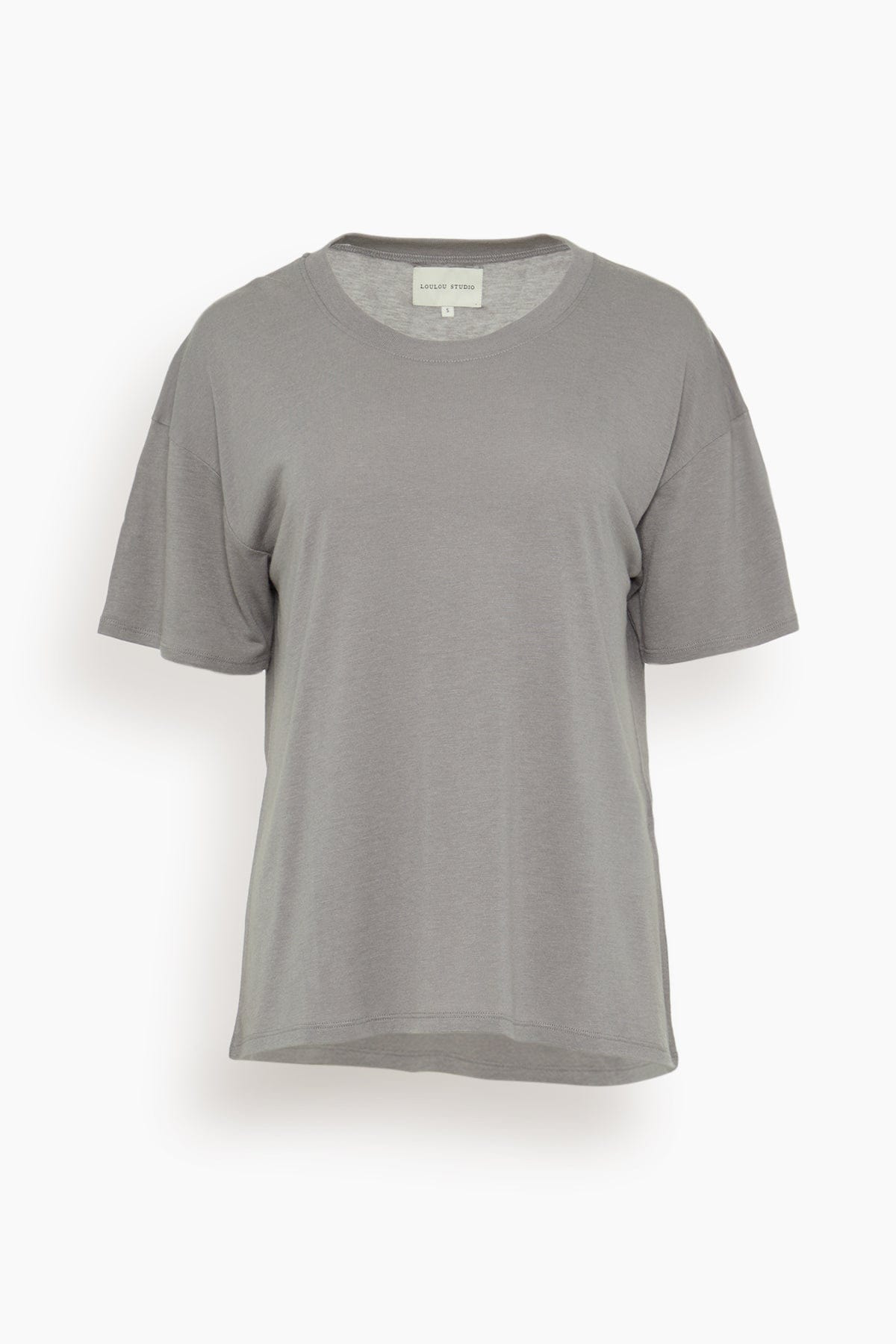 The Loulou Studio Short Sleeved T-Shirt will be a staple in your wardrobe. This t-shirt features a relaxed, boxy silhouette in classic pima cotton. Wear yours with jeans and flats. FIT DESCRIPTION MODEL MEASUREMENTS - Fits true to size, take your normal size - T-shirt - Relaxed fit - Drop shoulders - Side slits - 100% pima cotton - Emma is wearing a size XS - Bust: 32” - Waist: 25” - Hips: 34” - Height: 5’7”