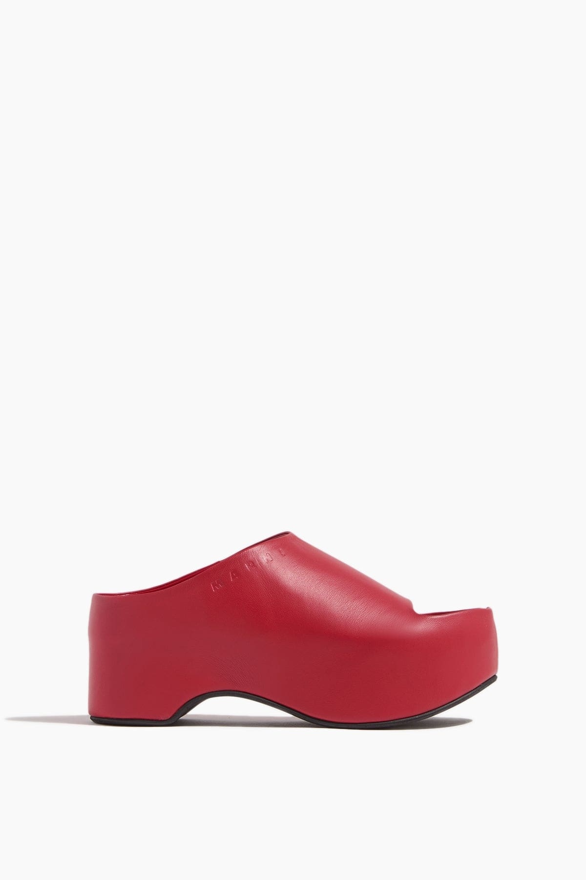 The Marni Platform Sandal in Tulip will be a standout piece in your spring and summer wardrobe. These sandals feature a sculptural slip on style in leather. FIT DETAILS - Sandals - Slip on - Platform heel - Leather upper - Rubber sole
