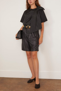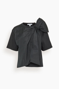 The Max Mara Colle Knitted Blouse will add a touch of whimsy to your wardrobe. This blouse features an oversized bow detail with a boxy silhouette. Wear yours with jeans and flats. FIT DESCRIPTION MODEL MEASUREMENTS - Fits true to size, take your normal size - Short sleeve blouse - Boxy silhouette - Oversized bow - Crew neckline - 100% cotton; fabric 75% polyester, 25% silk. - Rayna is wearing a size XS - Bust: 34” - Waist: 24” - Hips: 32” - Height: 5’8.5”