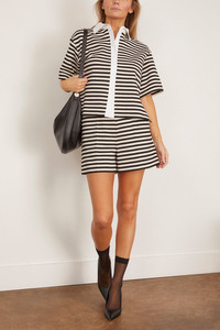 The Max Mara Onirica Shorts are the perfect mix of tailored and relaxed. These striped shorts feature a high rise and wide leg with a front flap closure. Wear yours with the matching top and flats. FIT DETAILS - Shorts - High rise - Wide leg - Hook and eye flap closure - 83% Viscose, 12% Polyamide, 5% Elastane