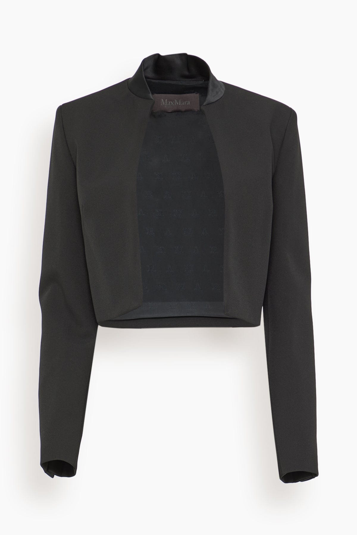 The Max Mara Tesoro Jacket will be in your wardrobe for years to come. This jacket features a cropped length and stand collar in stretch sable material. Wear yours with trousers and heels. FIT DESCRIPTION MODEL MEASUREMENTS - Fits true to size, take your normal size - Jacket - Tailored silhouette - Cropped length - Stand collar - Open front - 90% polyester, 10% elastane - Harriet is wearing a size 38/ 2 US - Bust: 32" - Waist: 24" - Hips: 30.5" - Height: 5’8.5”