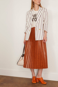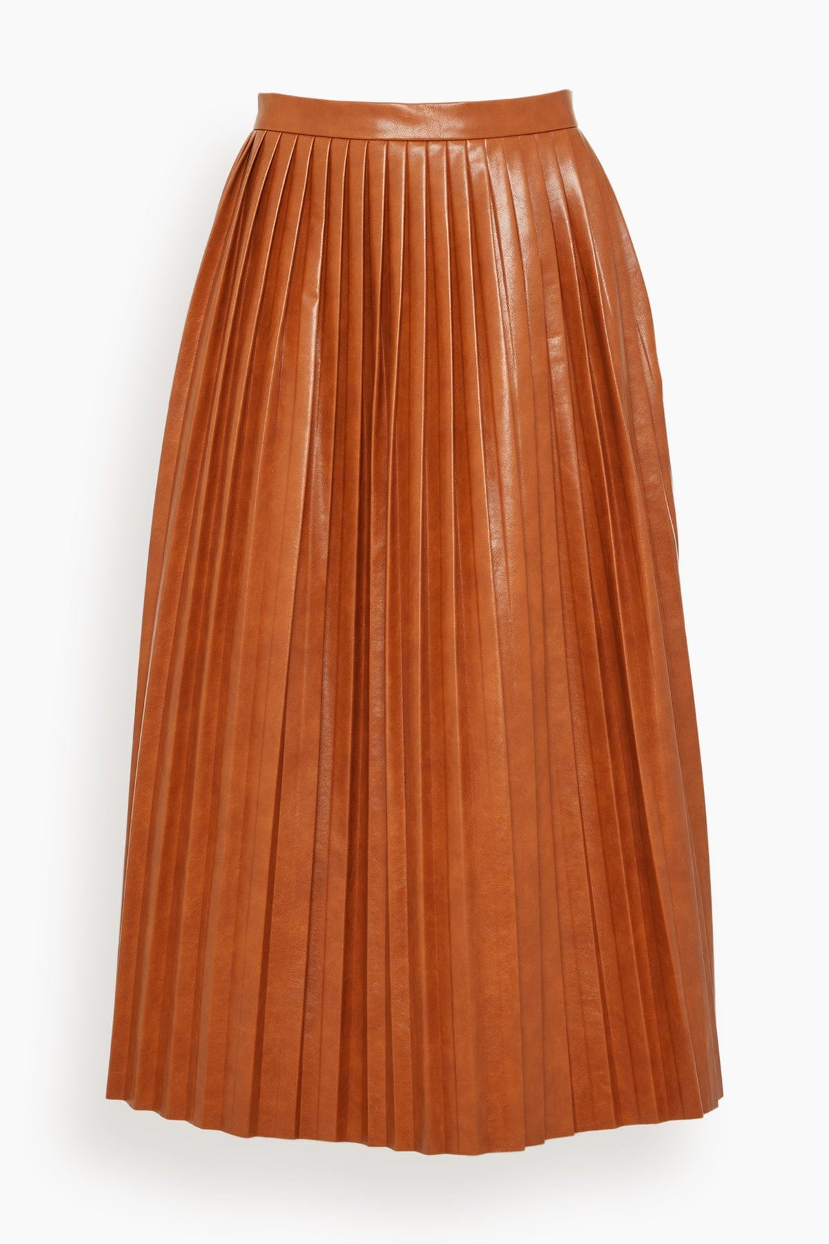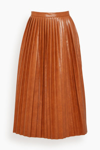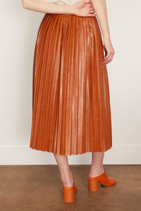 The MM6 Maison Margiela Pleated Faux Leather Skirt in Caramel is a pleated faux leather skirt with midi length and side zip closure.