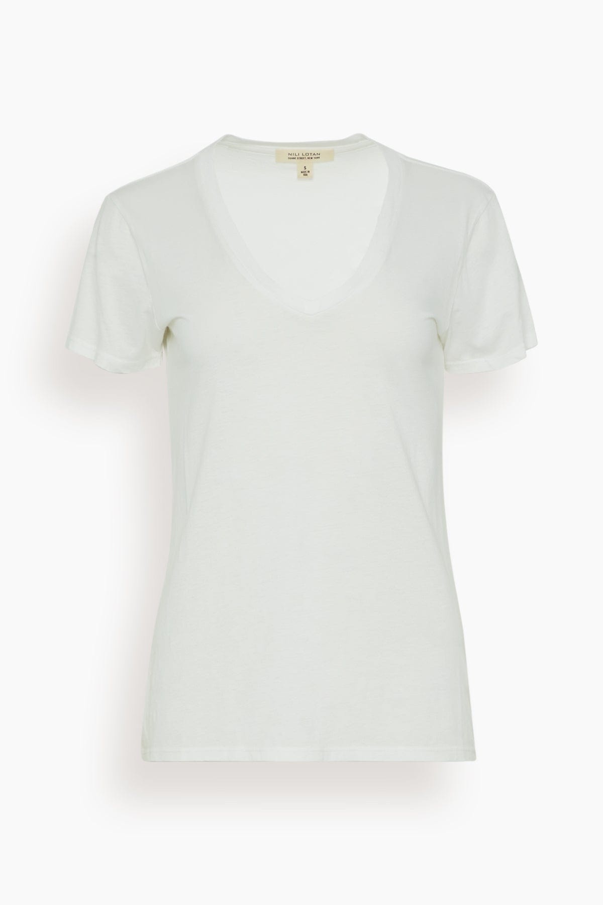 The Nili Lotan Carol Vneck Tee Shirt is a great basic to add to your wardrobe. This t-shirt features a v-neckline with a relaxed fit. Wear yours with jeans and a sweater this season. FIT DESCRIPTION MODEL MEASUREMENTS - Fits true to size, take your normal size - Short sleeve t-shirt - V-neckline - Relaxed fit - 100% Supima Cotton - Celeste is wearing a size XS - Bust: 35" - Waist: 25.5" - Hips: 34" - Height: 5’10”