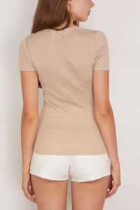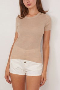 The Nili Lotan Hettie Sweater in Stone is a slim double ply compact ribbed knit tee in Italian silk. We love it worn with a pair of jeans and flats. FIT DESCRIPTION MODEL MEASUREMENTS - Fits true to size, take your normal size - Single layer rib at neck - Rib start at cuff and hem - Fashioning details at arm and shoulder - 100% Silk - Dry clean recommended - Rayna is wearing a size XS - Bust: 34” - Waist: 24” - Hips: 32” - Height: 5’8.5”