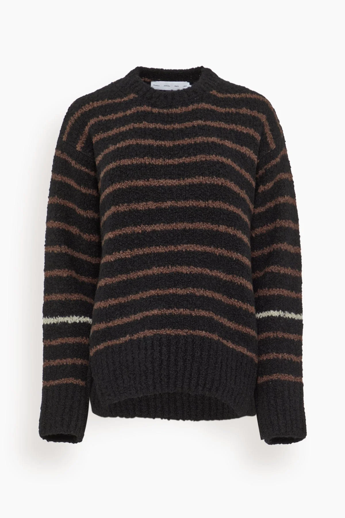 The Proenza Schouler White Label Leonie Sweater in Stripe Wool is knit in plush wool stripes to a relaxed crew-neck silhouette, finished with thick ribbed trims and side splits at the hem. FIT DESCRIPTION MODEL MEASUREMENTS - Fits true to size, take your normaal size - Black multi - Wool stripes - Side splits - High-low hem - Relaxed fit - 100% wool - Harriet is wearing a size XS - Bust: 32" - Waist: 24" - Hips: 30.5" - Height: 5’8.5”