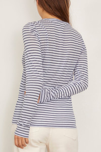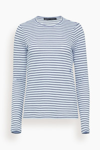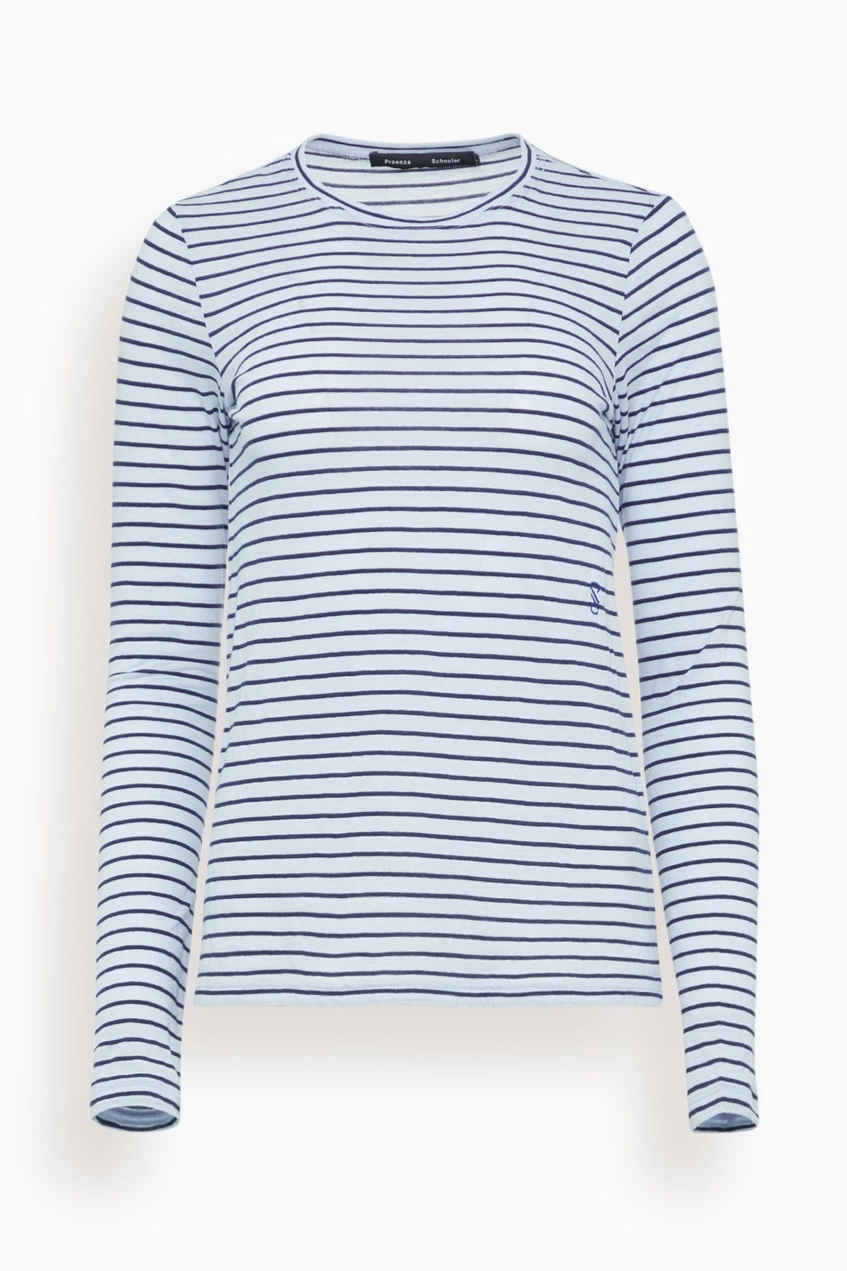 The Proenza Schouler Mia T-Shirt will quickly become a staple in your wardrobe. This striped t-shirt features a relaxed fit with a classic crew neckline. Wear yours with shorts and sandals. FIT DESCRIPTION MODEL MEASUREMENTS - Fits true to size, take your normal size - Long sleeve t-shirt - Relaxed fit - Crew neckline - 77% cotton, 23% linen - Emma is wearing a size XS - Bust: 32” - Waist: 25” - Hips: 34” - Height: 5’7”