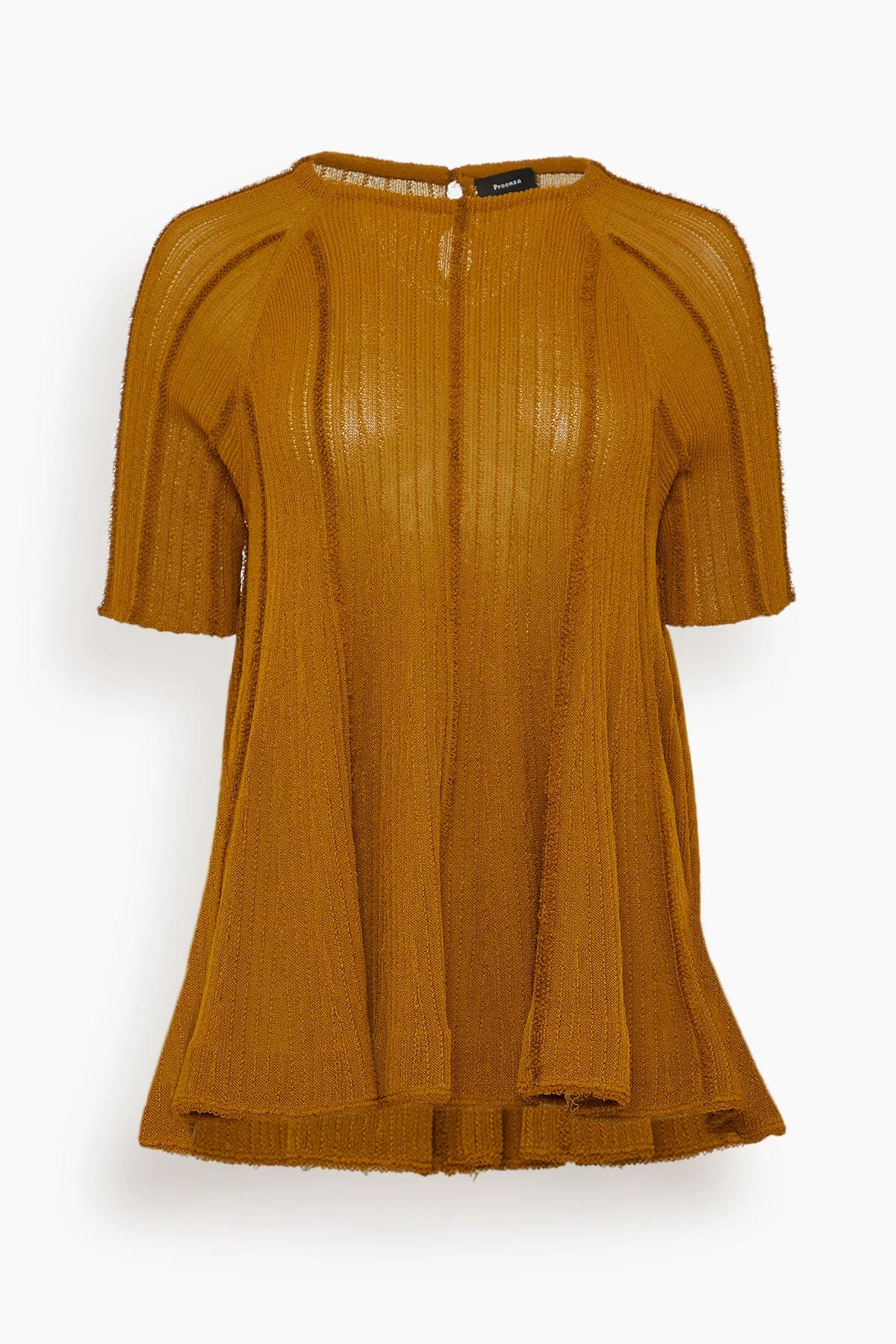 The Proenza Schouler Tavia Top in Viscose Fringe Knit is crafted to a relaxed, mock-neck silhouette. Finished with a soft drape and subtle texture. FIT DESCRIPTION - Fits true to size, take your normal size - Olive - Mock-neckline - Short sleeves - Defined pleats - Relaxed fit