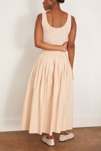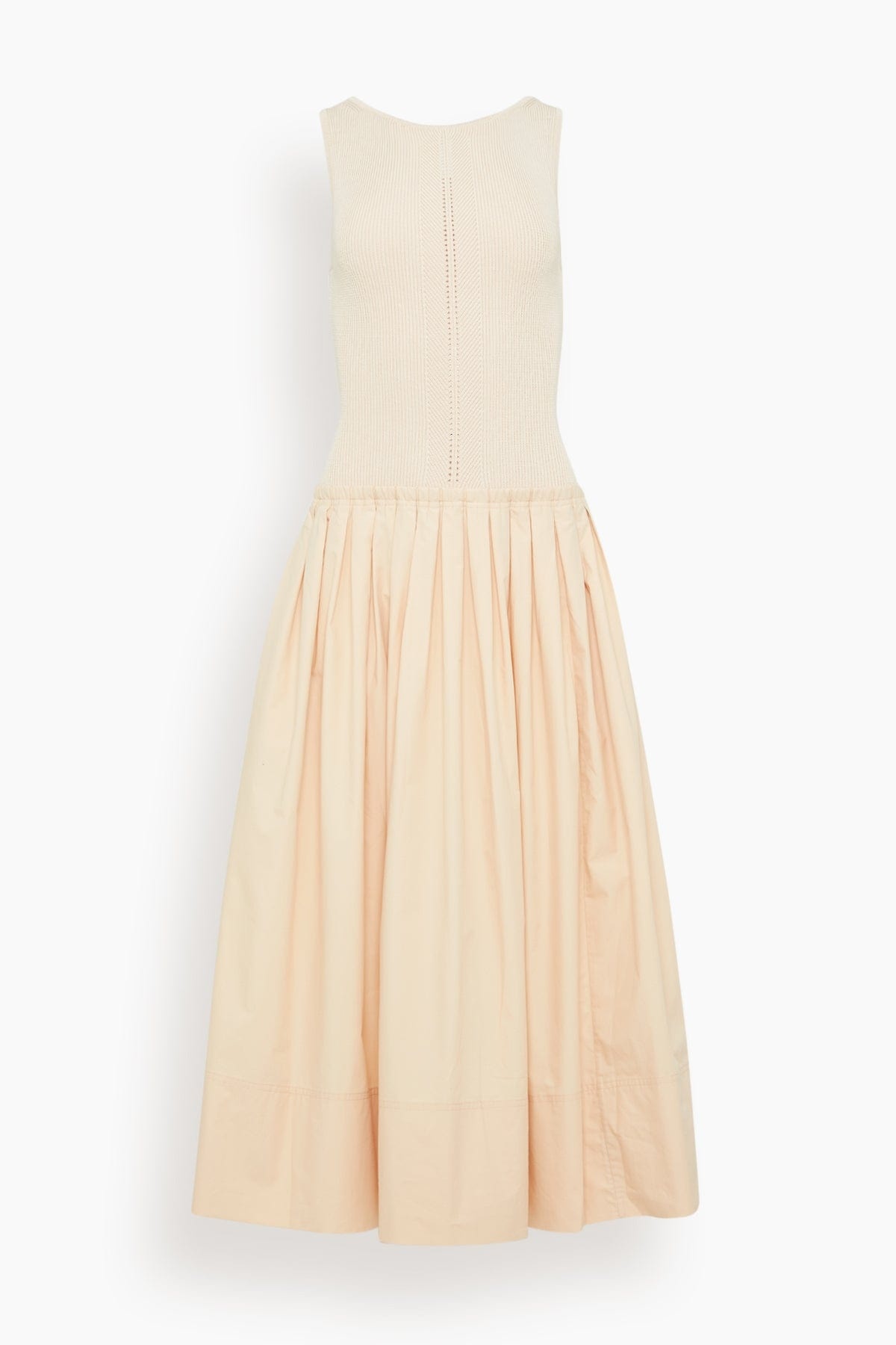 The Proenza Schouler White Label Tori Knit Dress is a must-have piece from their Spring 25 Collection. This midi dress features a full cotton poplin skirt with a contrasting fitted knit bodice. Wear yours with sandals and a shoulder bag. FIT DESCRIPTION MODEL MEASUREMENTS - Fits true to size, take your normal size - Midi length - Mixed material - Knit bodice - Cotton poplin skirt - Wide neckline - Drop waistline - Bodice: 50% silk, 50% cotton; Skirt: 100% cotton - Kyndal is wearing a size 2 - Bust: 32" - Waist: 24" - Hips: 35“ - Height: 5’6”