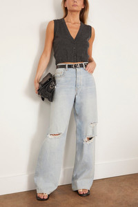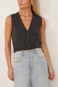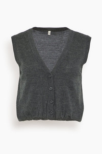 The R13 Balloon Vest is a classic with a twist. This knit vest features a cropped length with a tucked in hemline. Wear yours with jeans and loafers. - Knit vest - Cropped length - V-neckline - 100% Merino Wool