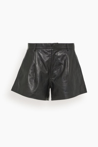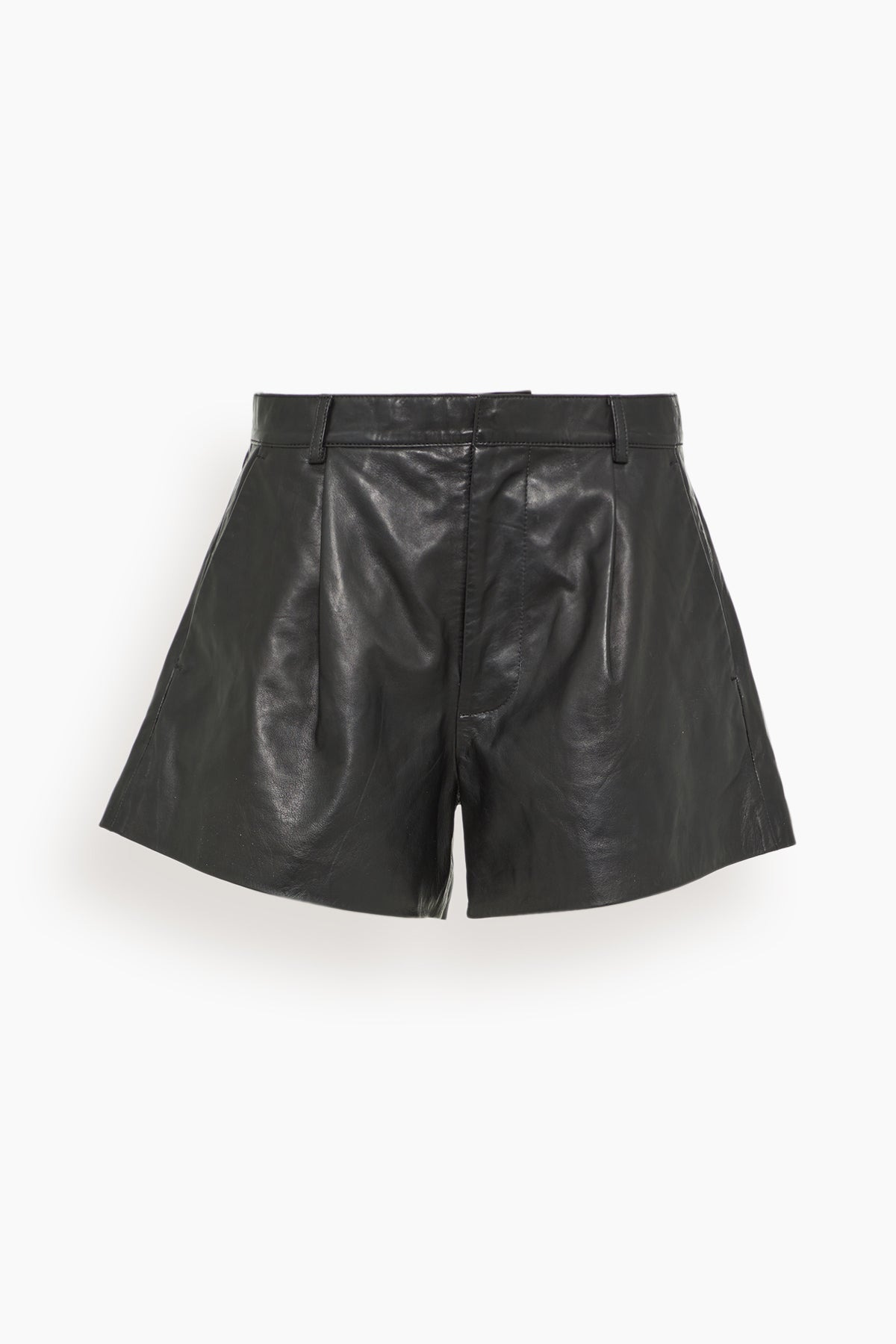 The R13 Wide Leg Leather Shorts in Black feature a wide leg and pleated detail at the front. - Leather shorts - Wide leg - Pleats - Relaxed fit - 100% Leather