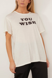 The R13 You Wish Boy T in Ecru is a classic relaxed fit Boy T featuring a "You Wish" print at the front. - Short sleeves - Relaxed fit - Crewneck - Graphic at front - 95% Cotton, 5% Cashmere