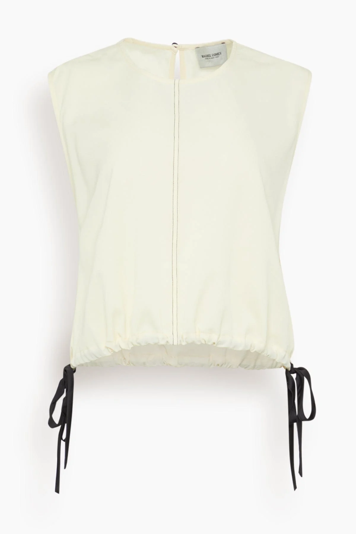 The Rachel Comey Aero Top will have you dreaming of a warm weather getaway. This sleeveless top features a loose silhouette with a drawstring hemline. Wear yours with the matching pants and sandals. FIT DESCRIPTION MODEL MEASUREMENTS - Fits true to size, take your normal size - Sleeveless top - Loose silhouette - Crew neckline - Drawstring hemline - 100% Organic Cotton