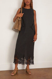 The Rachel Comey Faden Dress is a great transitional piece to add to your wardrobe. This dress features beautiful embroidery along the sides and hemline with a shift silhouette. Wear yours with sandals and a shoulder bag. - Midi length - Shift silhouette - Embroidery - Crew neckline - Front slit