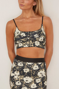 The Rachel Comey Labora Top is a standout piece from their Spring 25 Collection. This bra top is crafted in a bold, floral print with a slim silhouette. Wear yours with the matching skirt and flats. - Bra top - Slim silhouette - Cropped length - Scoop neckline