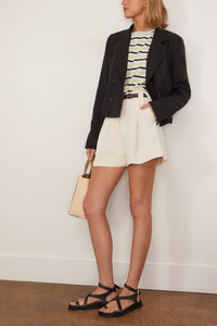 The Rachel Comey Leo Short will be a staple in your summer wardrobe. These shorts feature a tailored silhouette with a high rise and linen blend. Wear yours with a t-shirt and sandals. FIT DESCRIPTION MODEL MEASUREMENTS - Fits true to size, take your normal size - Tailored shorts - High rise - Front pleats - 52% Linen, 48% FSC Viscose - Harriet is wearing a size 2 - Bust: 32" - Waist: 24" - Hips: 30.5" - Height: 5’8.5”