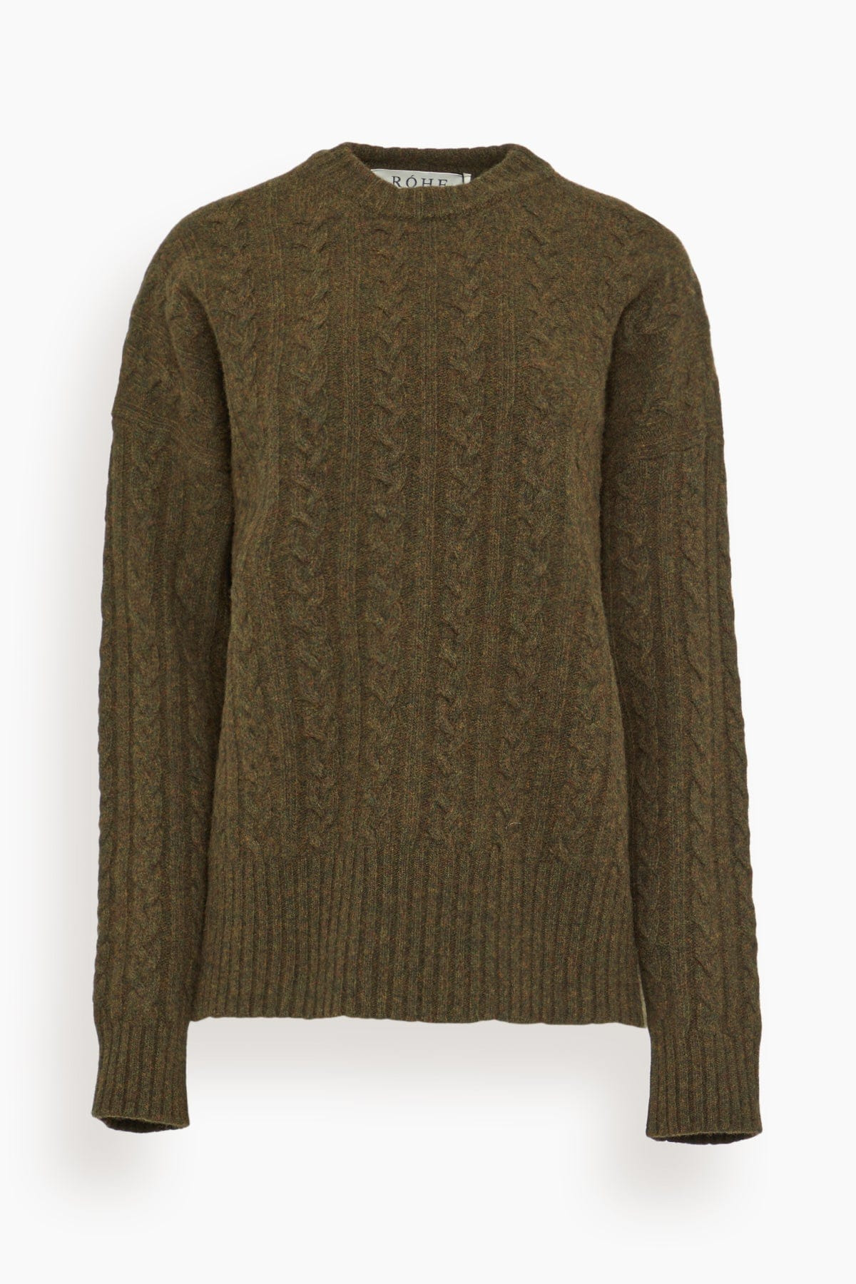 The Rohe Cable Knit Jumper will be in your wardrobe for years to come. This cableknit sweater features a relaxed fit in cozy wool. Wear yours with trousers and clogs. - Cableknit sweater - Relaxed fit - Crew neckline - Drop shoulders - 100% wool