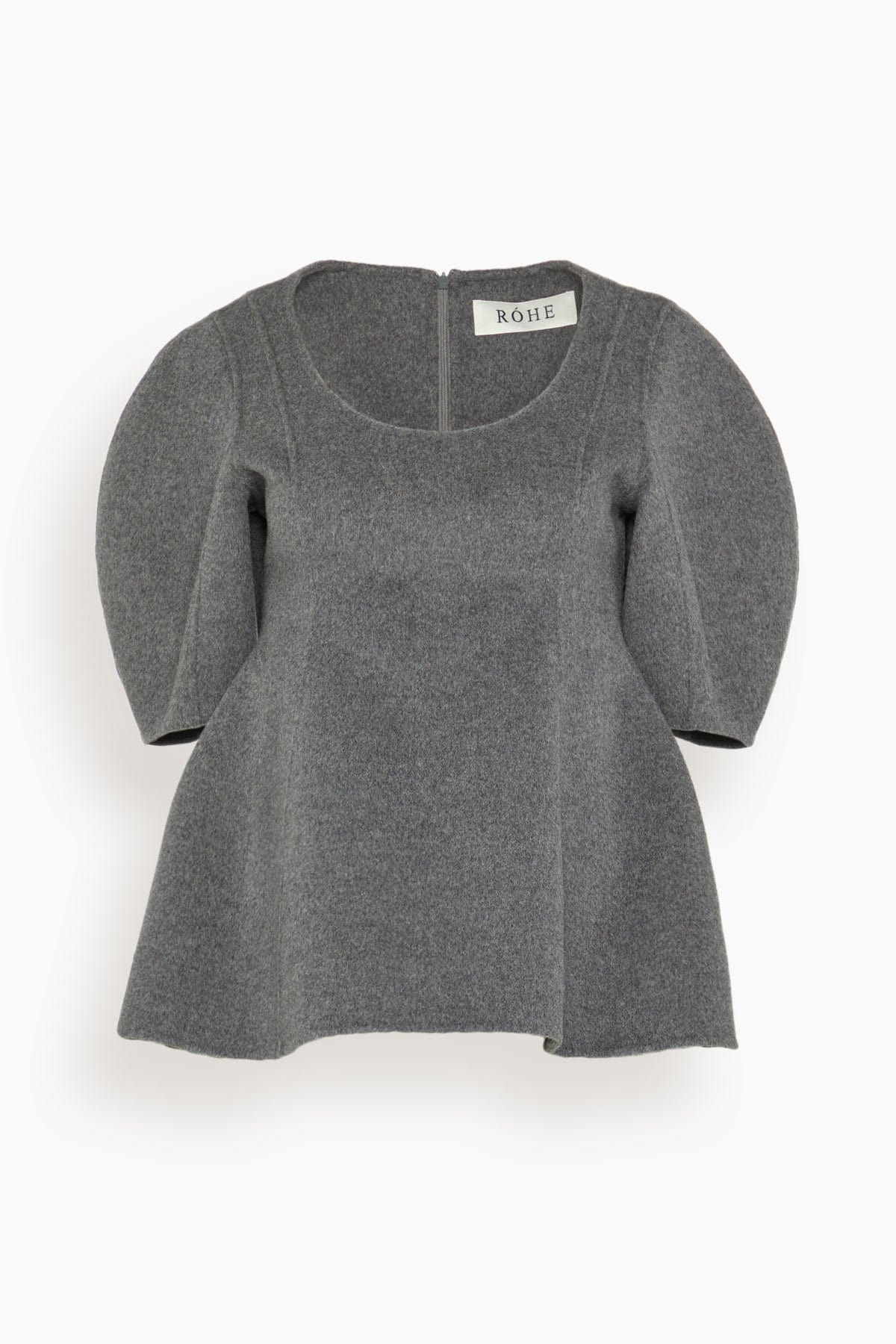 The Rohe Sculptural Double-Faced Top is a standout piece from their Fall 25 Collection. You'll love the sculptural silhouette of this wool blend top with wide sleeves and a peplum hemline. Wear yours with trousers and flats. - Sculptural top - Scoop neckline - Peplum hemline - Wide sleeves - 95% wool 5% cashmere
