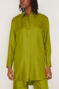 The Rohe Signature Elongated Silk Shirt is a twist on a classic. This button down shirt features an oversized fit with a longer length in silk. Wear yours with trousers and flats. FIT DESCRIPTION MODEL MEASUREMENTS - Oversized fit; we suggest taking your normal size for the designed fit - Long length - Drop shoulders - 100% silk - Elishia is wearing a size 34/ 2 US - Bust: 34" - Waist: 27" - Hips: 35" - Height: 5’10”