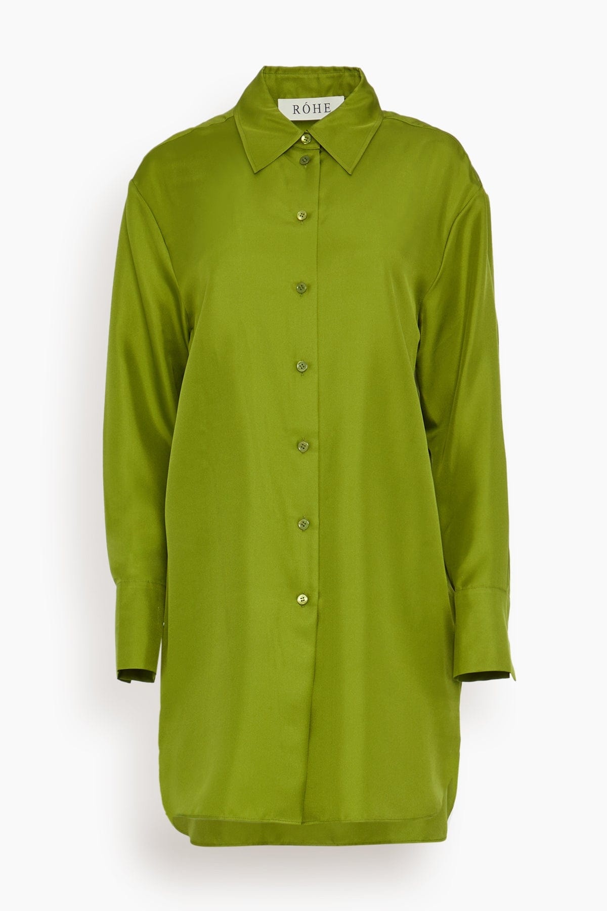 Signature Elongated Silk Shirt in Garden Green