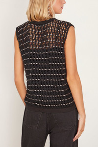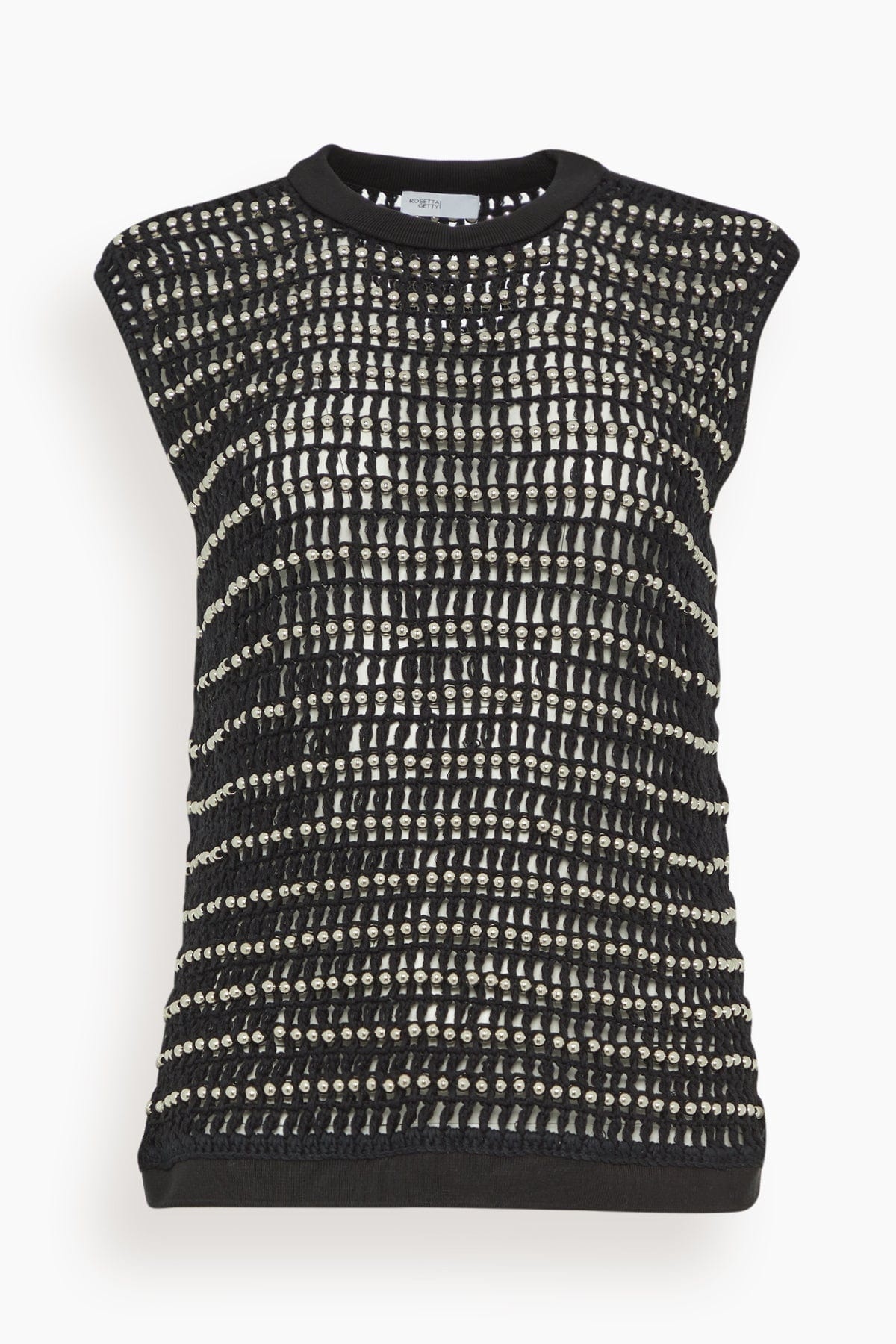 The Rosetta Getty Beaded Crochet Sweater Vest is a standout piece from their Resort 25 Collection. This vest features a relaxed fit with intricate beading that is perfect for an evening out. Wear yours with a skirt and heels. FIT DESCRIPTION MODEL MEASUREMENTS - Fits true to size, take your normal size - Vest - Relaxed fit - Brass beads - Semi-sheer - 100% Cotton with 100% Polished Brass Beads - Harriet is wearing a size XS - Bust: 32" - Waist: 24" - Hips: 30.5" - Height: 5’8.5”